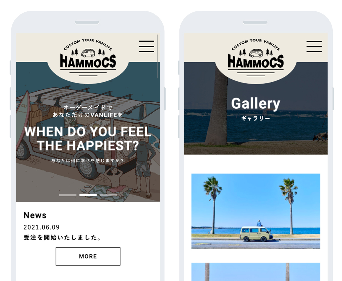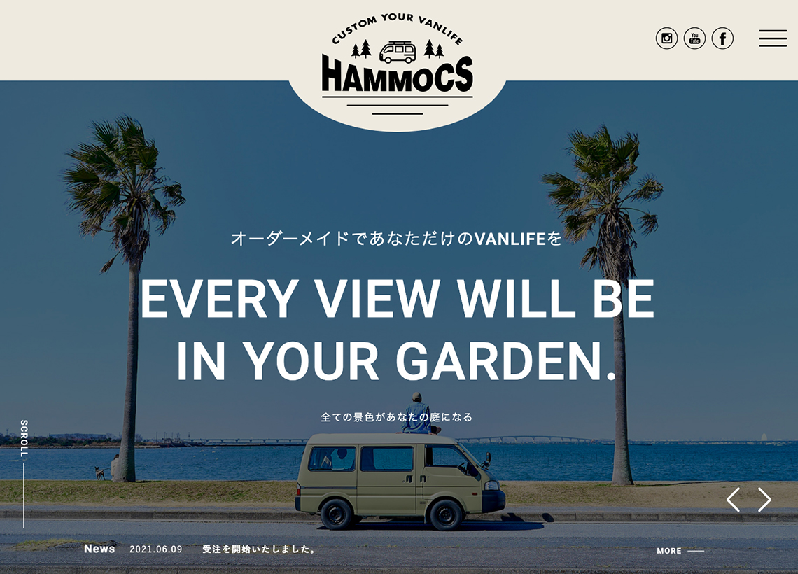 オーダーメイドでバンカスタムのサービス行われているHAMMOCS(ハンモックス)様Webサイトとロゴを新規制作させていただきました。