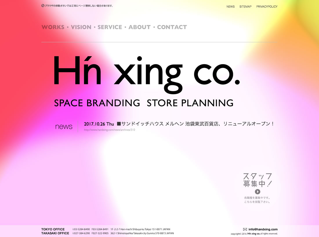 HTML5のCanvasにてカラフルな背景カラーの変化を実装。ページ遷移でも途切れないようpjaxで非同期画面遷移を実現しています。