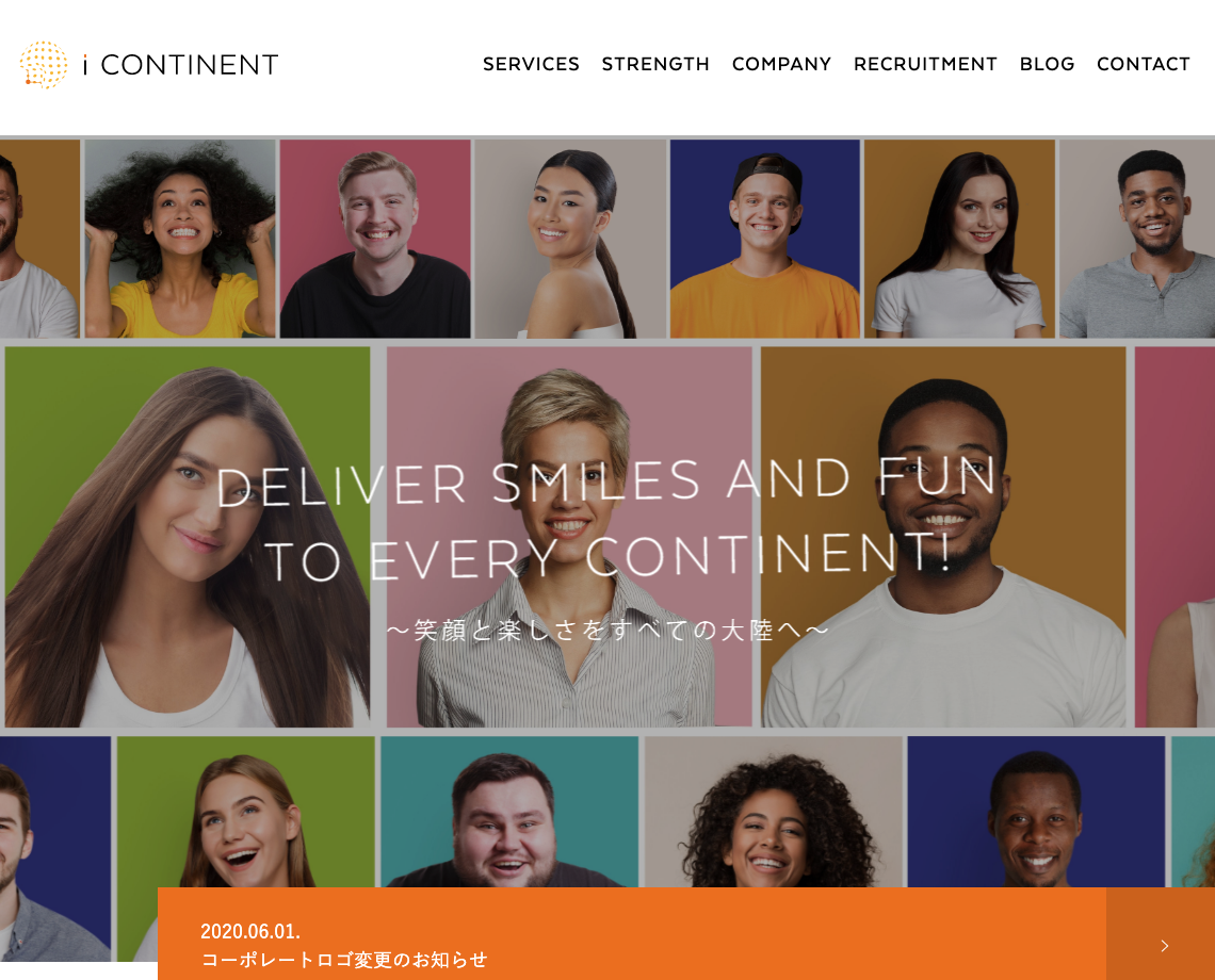 i CONTINENT(アイコンチネント)株式会社様コーポレートサイトを制作をさせて頂きました。リニューアルにあたり、ロゴや印刷物も一新しました。