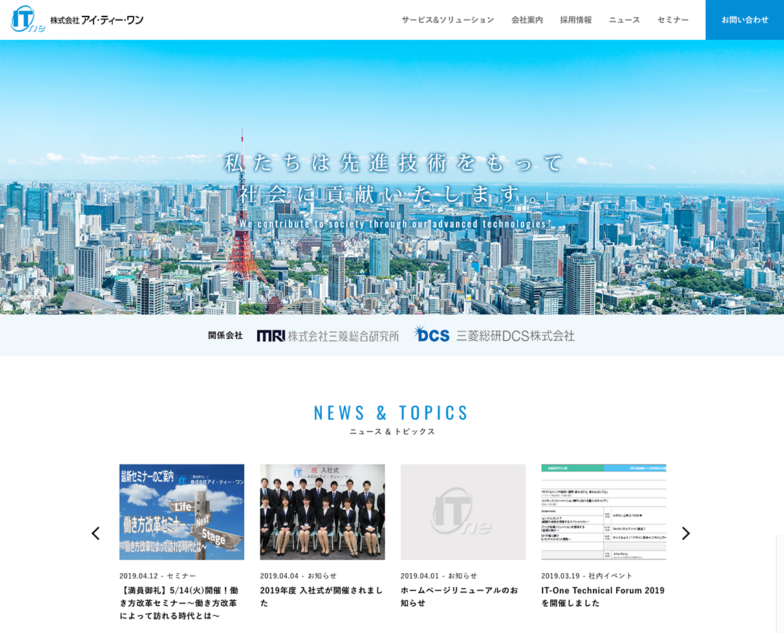 株式会社アイ・ティー・ワン様Webサイトリニューアル。ニュースとブログはWordPressにて構築。
