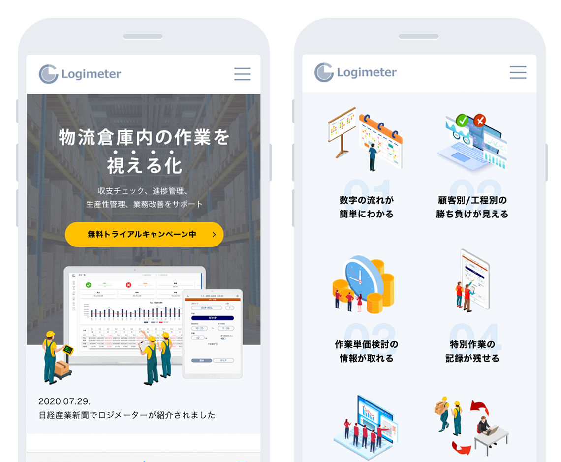 物流業務の倉庫内作業を可視化するアプリ「ロジメーター」の新規Webサイトを制作させていただきました。