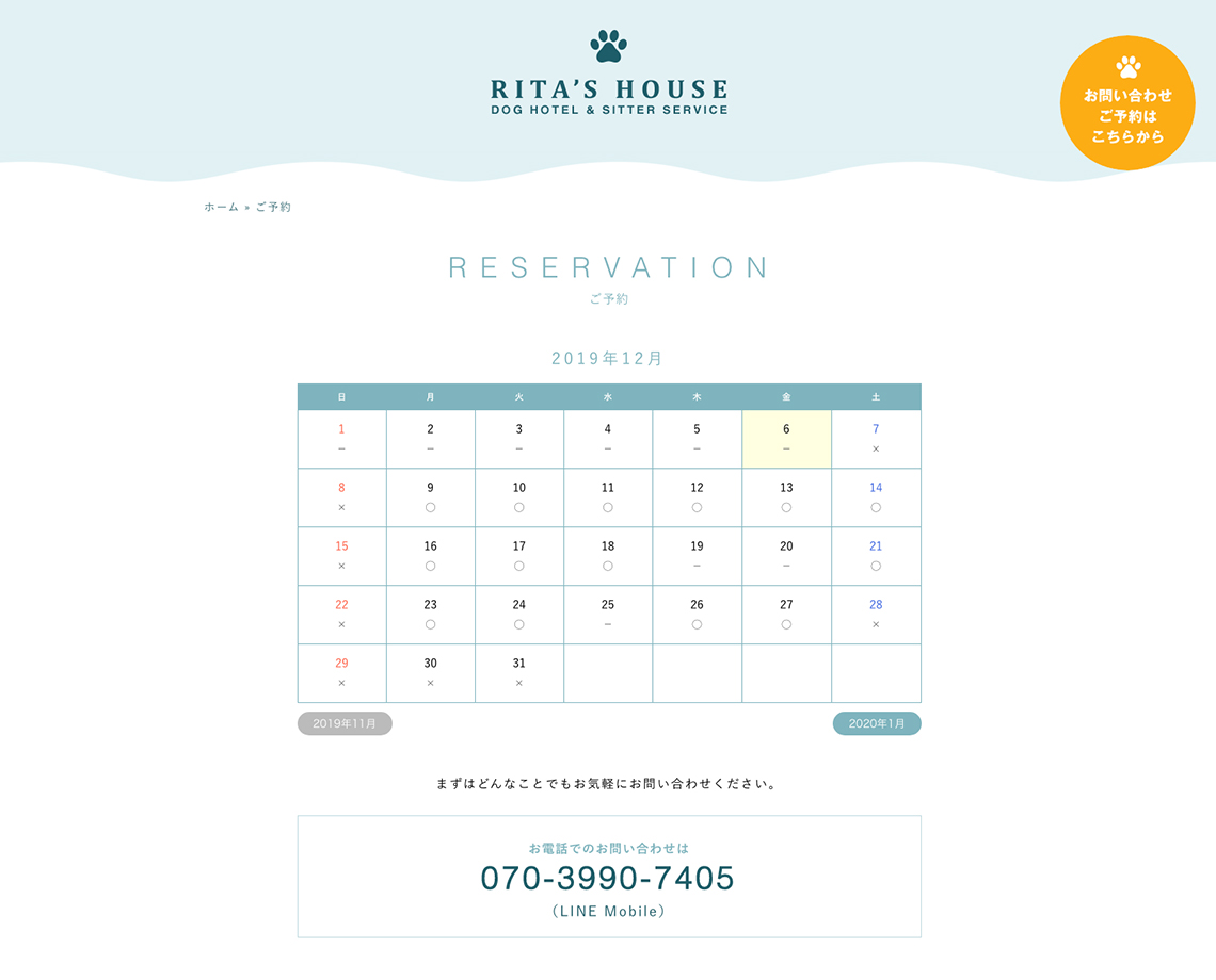 RITA'S HOUSE様 Webサイト制作。予約ページには予約状況が分かるカレンダーを導入しました。